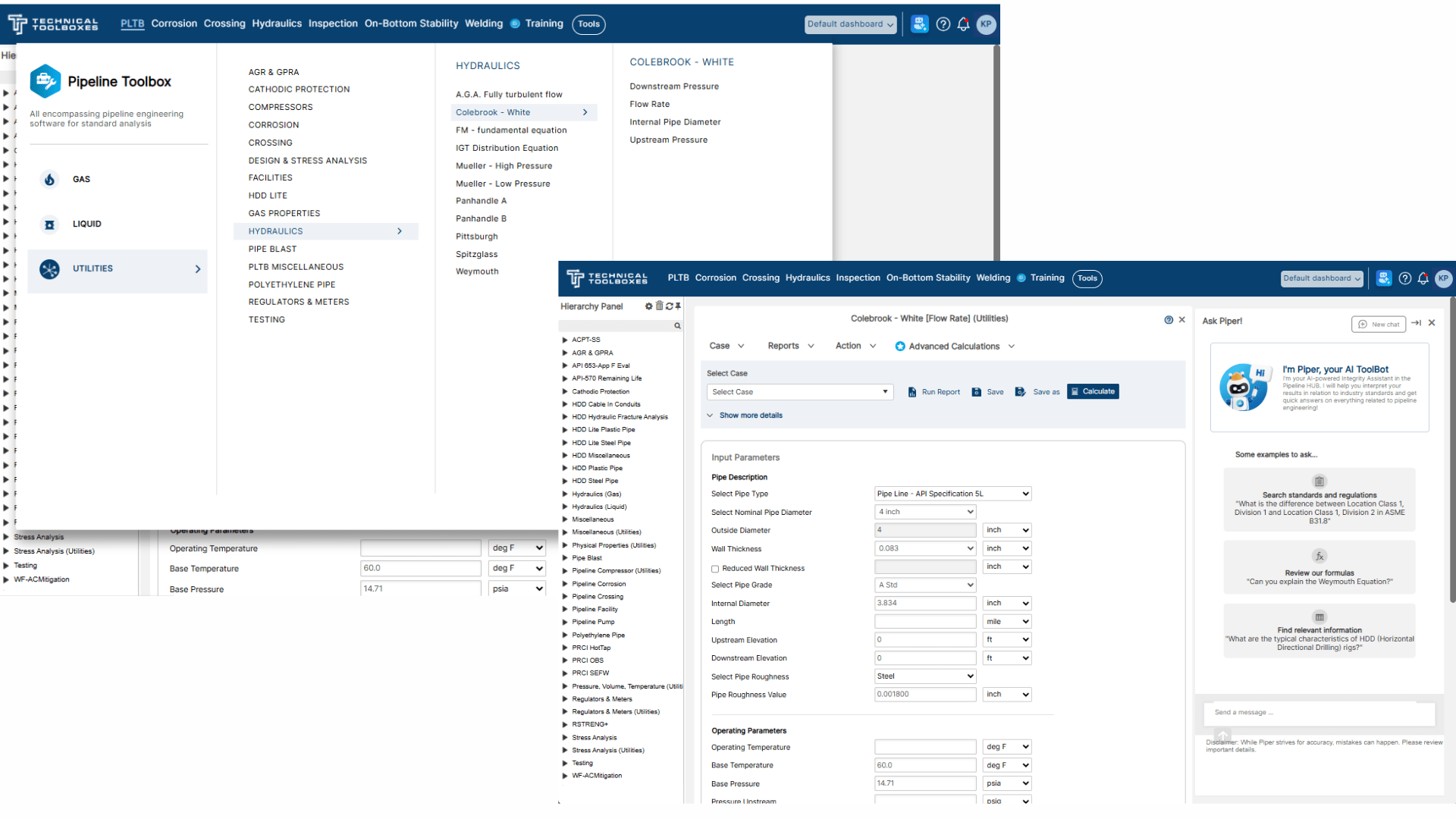 PLTB-U is built on the same engineering calculation framework used in Pipeline Toolbox, giving utilities access to a growing set of validated engineering tools.Ā